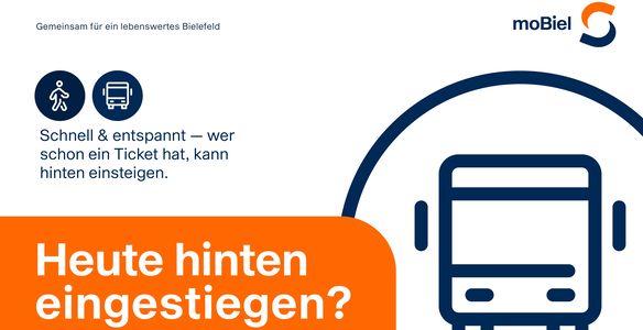 Wenn du bereits ein Ticket hast, kannst du seit März 2025 in allen Bussen von moBiel auch die hinteren Türen für den Einstieg nutzen.