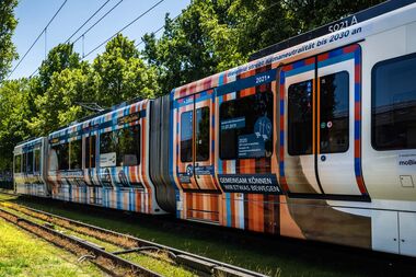 Seit Ende März 2023 ist sie auf den Bielefelder StadtBahn-Linien 2 und 4 unterwegs: die erste Klimabahn NRWs!