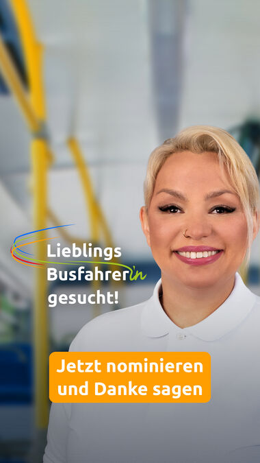 Der bundesweite Wettbewerb geht ins dritte Jahr! Wir wollen als Verkehrsunternehmen gemeinsam mit euch den Heldinnen und Helden der Straße Danke sagen – für ihr tägliches Engagement, ihre Leidenschaft und dafür, dass sie ihre Fahrgäste ans Ziel und zum Lächeln bringen. Bis zum 31. Mai 2025 könnt ihr auf lieblingsbusfahrerIn.de eure schönste Bus-Geschichte erzählen – und eure:n Lieblingsbusfahrer:in nominieren!