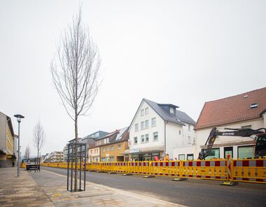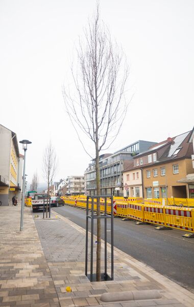 Im März 2024 wurde der erste Bauabschnitt in der Hauptstraße fertiggestellt. Als letztes haben die neuen Bäume dort ihren Platz gefunden. Das neue Straßenbild ist hier nun bereits beutlich erkennbar.