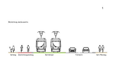 Zielquerschnitt mit Zweirichtungsradweg auf nördlicher Seite und einem kombinierten Geh-/Radweg auf südlicher Seite: