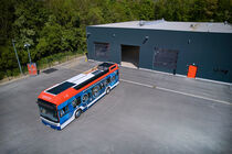 - In der ersten Generation besitzt jeder von ihnen einerseits fünf Wasserstofftanks, die insgesamt 37,5 Kilogramm Wasserstoff aufnehmen können und für eine Reichweite von etwa 400 bis 500 Kilometern sorgen. Damit müssen die Busse auf der Linie 29 nur einmal pro Tag vollgetankt werden. Andererseits verstecken sich im Dachaufbau die Brennstoffzellen.
