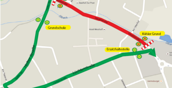 Von Donnerstag, 12. Februar ab 7:00 Uhr bis Freitag, 13. Februar um ca. 11:00 Uhr werden die Bus-Linien 34, 46, 81 und 235 an der Hauptstraße umgeleitet.