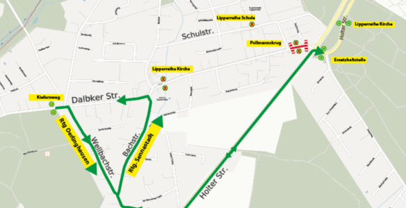 Bis auf Weiteres wird die Bus-Linie 39 in Oerlinghausen in der Straße Auf dem Sande umgeleitet.