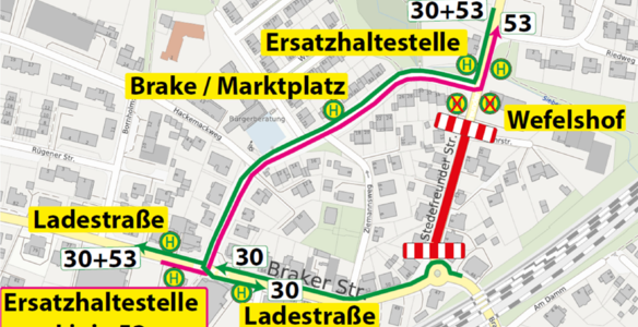 Von Dienstag, den 07. April bis Freitag, den 10. April werden die Bus-Linien 30 und 53 in beide Richtungen an der Stedefreunder Straße umgeleitet.