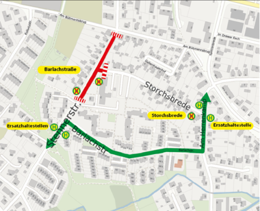 Die Umleitung erfolgt über Am Herrenkamp und Barlachstraße.