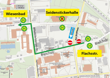 Die Umleitung erfolgt über Bleichstraße, Wilhelm-Bertelsmann-Straße und Werner-Bock-Straße.
