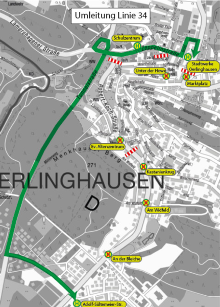 - (H) Stadtwerke Oerlinghausen (Bedienung in der jeweils falschen Fahrtrichtung)
