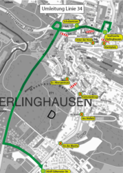 Von 12:00 Uhr bis voraussichtlich 14:30 Uhr wird die Bus-Linie 34 in beide Richtungen an der Robert-Koch-Straße umgeleitet.