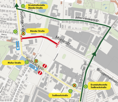 - Ersatzhaltestelle in der Johanneswerkstraße
