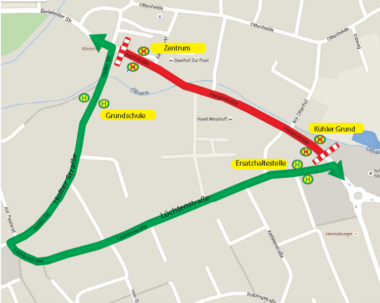 Achtung: Am Donnerstag, 12. Februar wird zusätzlich von 12:30 bis voraussichtlich 15:30 Uhr die Bielefelder Straße gesperrt. In diesem Zeitraum entfallen zusätzlich: