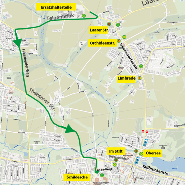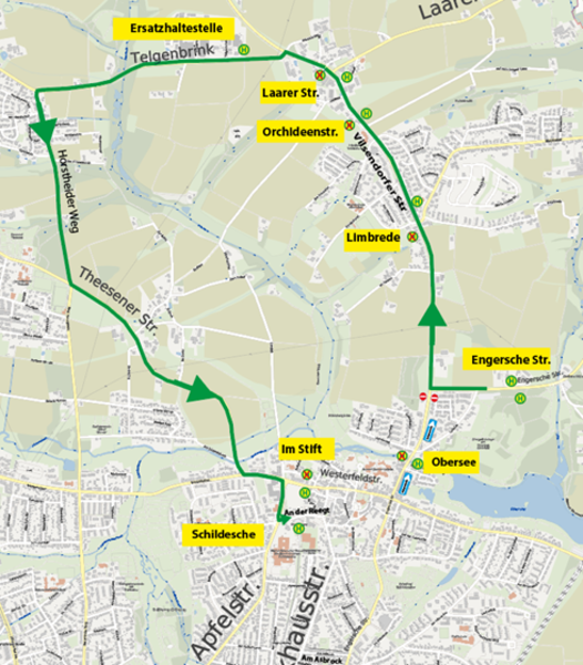 Als Umstieg für die Weiterfahrt in die Innenstadt empfehlen wir euch die (H) Schildesche.