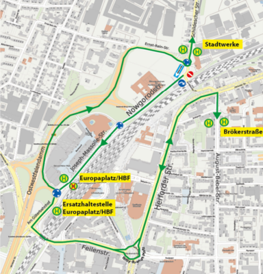 Folgende Haltestelle entfällt in Richtung Baumheide: