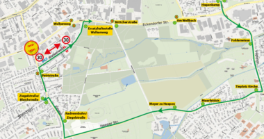Grund für die Umleitung sind Fernwärmearbeiten im Bereich Ziegelstraße/ Eckendorfer Straße.