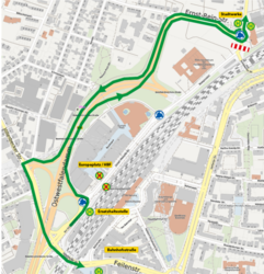 - Ersatzhaltestelle in der Str. am Güterbahnhof (in Richtung Baumheide)