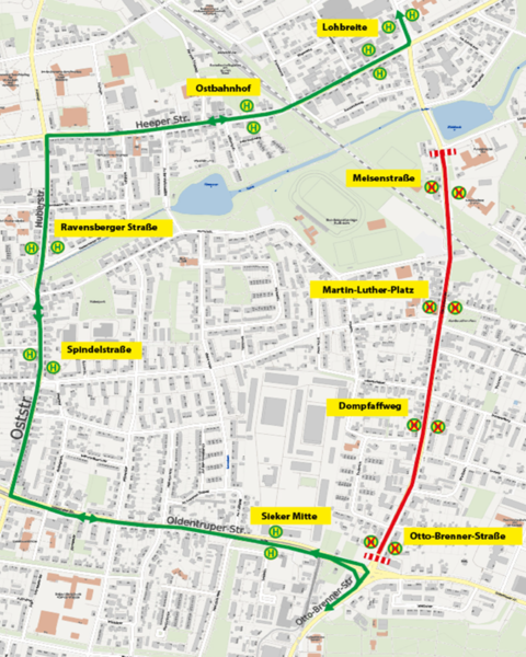 - (H) Otto-Brenner-Str. (beide Linien)
