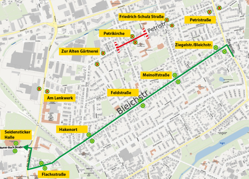- Haltestellen in der Bleichstraße