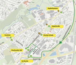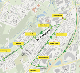 Grund für die Umleitung sind Fernwärme- und Straßenbauarbeiten im Bereich Lönkert und Sandhagen. Die Artur-Ladebeck-Straße wird in diesem Bereich für Kraftfahrzeuge über 2,30 m Breite gesperrt.