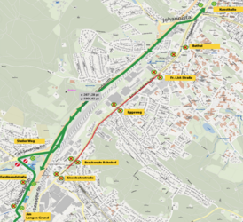 Auf den Umleitungsstrecken werden alle Haltestellen bedient (siehe Skizze).