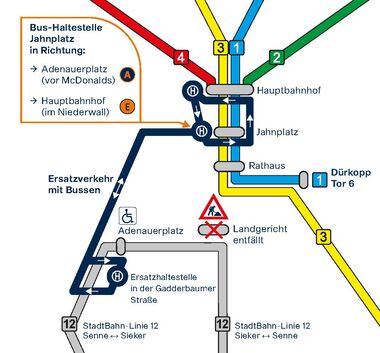 - Adenauerplatz: Ersatzhaltestelle in der Gadderbaumer Straße