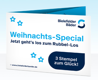 Sie lieben das Wasser, die Sauna oder die Eisbahn? Dann ist dieses Weihnachts-Special genau das Richtige für Sie! Sammeln Sie bis zum 23.12. bei jedem Ticket-Kauf einen Glücks-Stempel in unseren Bädern, Saunen oder auf der Oetker-Eisbahn. Haben Sie drei Stempel zusammen, geben Sie die Stempelkarte an der Kasse ab und können sich ein Rubbellos angeln!