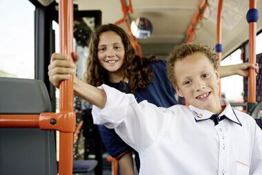 In unserer Busschule lernen KindAls Kind gilt, wer unter 15 Jahre alt ist. Kinder unter 6 Jahren dürfen in Begleitung eines Erwachsenen kostenlos mitfahren. Von 6 bis einschließlich 14 Jahren benötigt jedes Kind ein KinderTicket. Eine Ausnahme sind Kinder unter 7 Jahren, die noch nicht zur Schule gehen. Sie dürfen weiterhin kostenfrei mitfahren. der Klassen 1 bis 5 das richtige und sichere Verhalten am und im Bus.